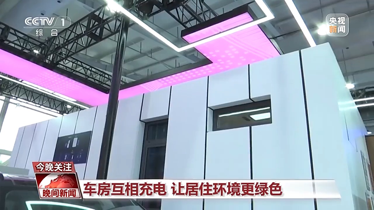 總臺央視記者 張春玲:在我們房子的頂部還有一個神秘的裝備就是新能源電池板,通過新能源電池板對太陽能的收集之后,它可以放在房屋這一側的儲能箱里,同時,它旁邊還有一個雙向的充電樁,這個充電樁可以給我們的新能源電池汽車進行充電,同時房子的能源匱乏的時候,我們的新能源汽車還可以反向的給這個房子放電,實現(xiàn)了能源循環(huán)利用。