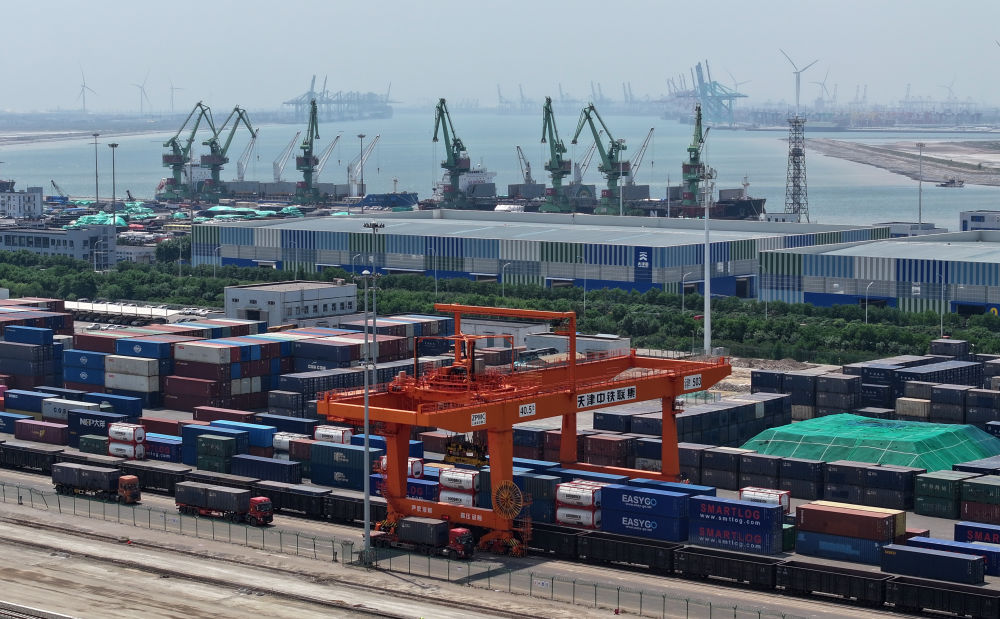 天津港正在實(shí)現(xiàn)“貨通全球”:北京的汽車運(yùn)往東南亞,裝滿進(jìn)口礦石的列車駛向中國西北,日韓生產(chǎn)的日用品短暫停留后發(fā)往蒙古國,新疆的番茄醬從這里“乘船出?!鼻巴鶜W洲……