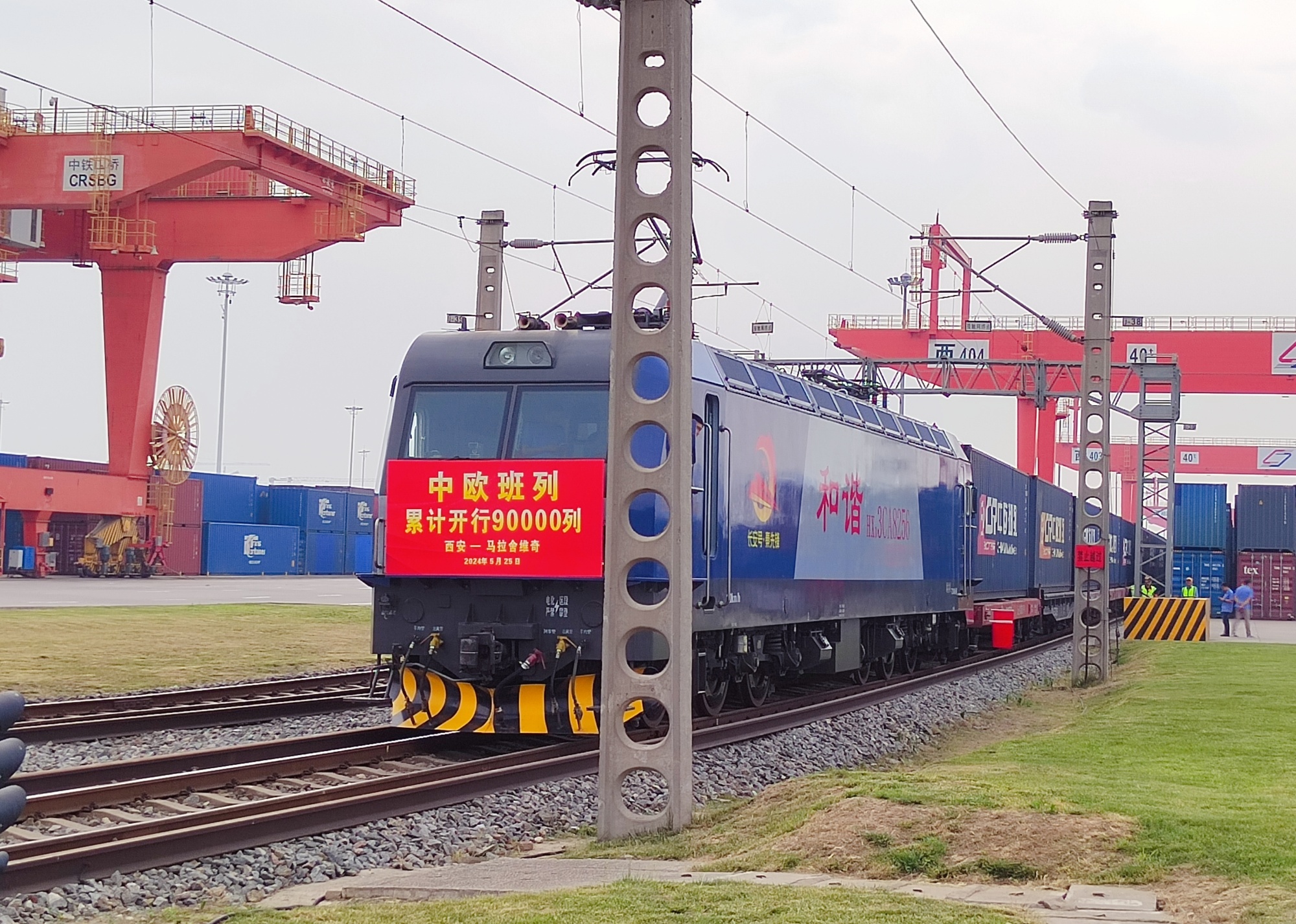 中歐班列,晝夜馳騁在歐亞大陸上,聯(lián)通東西,暢通貿易,是“絲綢之路經(jīng)濟帶”上的“鋼鐵駝隊”。今年5月24日,隨著X8157次中歐班列從西安國際港站發(fā)出,一路向西開去,中歐班列已經(jīng)累計開行9萬列。從2013年開行80列到2016年開行1702列,再到2023年開行1.7萬列,十年來,中歐班列不斷跑出“加速度”,目前已通達歐洲25個國家223個城市,連接11個亞洲國家一百多個城市,服務網(wǎng)絡基本覆蓋歐亞全境,年運輸貨值由2016年80億美元增長到2023年的567億美元。