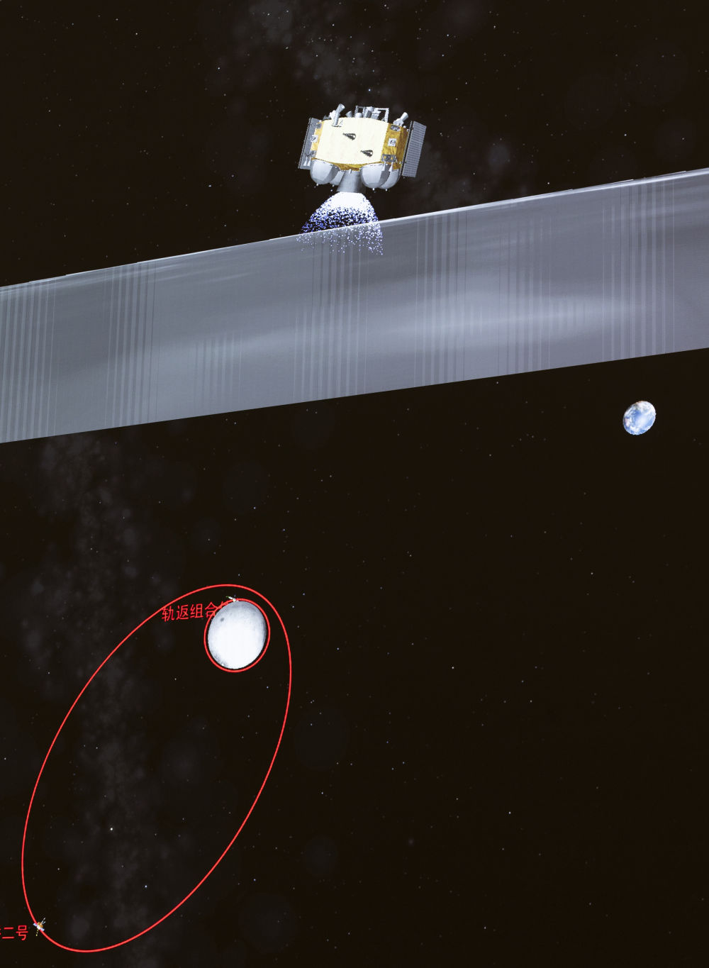 6月4日在北京航天飛行控制中心屏幕上拍攝的嫦娥六號取樣回放畫面。