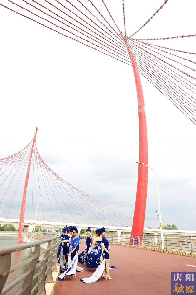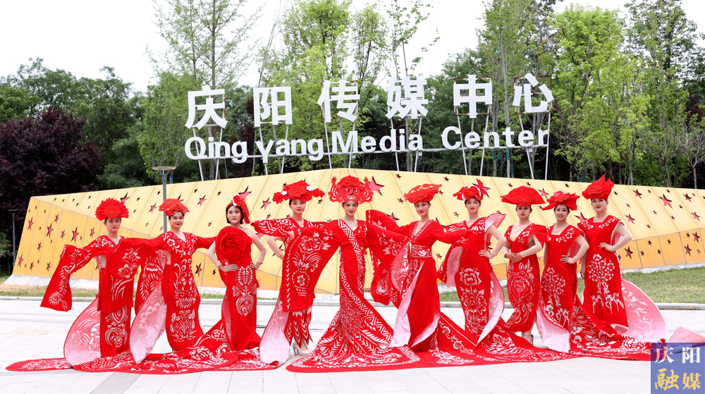 主播們身著刻鏤龍紋、鳳紋、抓髻娃娃、生命樹(shù)、魚(yú)鉆蓮、牡丹等剪紙紋樣,大V領(lǐng)、魚(yú)尾裙、聳肩收腰的“剪云裳”剪紙服裝,行走在傳媒大廈、西峰區(qū)彩虹橋、慶陽(yáng)市城市海綿運(yùn)動(dòng)綠地等處,全方位、多角度地展示了剪紙服裝的特色與魅力。