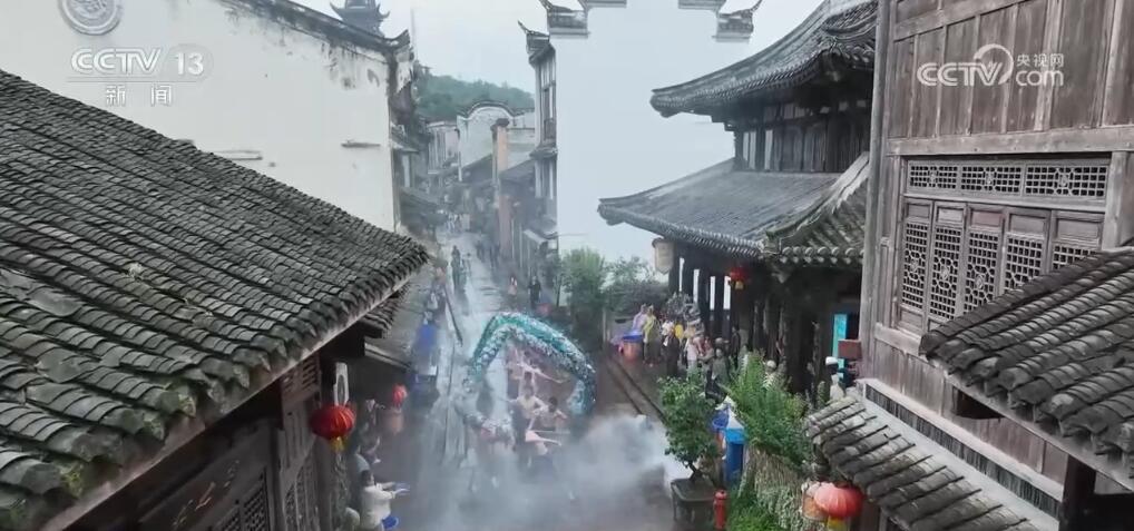 重慶市銅梁區(qū)的安居古城正在進行端午節(jié)的非遺文化表演——水云龍。10名赤膊的漢子舞動著一條18米的藍色水云龍,整條龍上下翻騰、左右騰挪,在兩邊明清時期的老屋之間穿行。而站在兩旁的居民和游客會拿著水瓢或者水盆,將清水潑向正在舞動的水云龍。雖然水云龍所到之處,大家衣衫都可能打濕,但是大家都樂在其中。