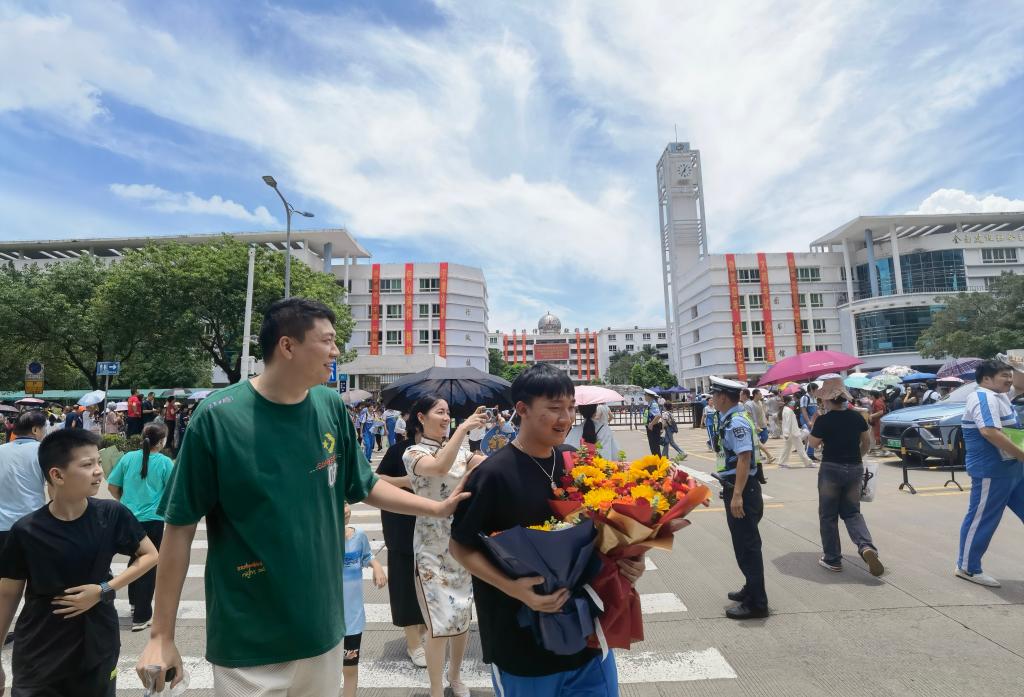 9日下午6點(diǎn)15分,最后一門生物學(xué)考完后,廣東2024年高考順利結(jié)束。在廣州市第六中學(xué)考場門口,一位父親手持親手做的向日葵迎接兒子,表達(dá)“一舉奪魁、金榜題名”的美好愿望;一位母親對(duì)兒子說,不管考得如何,接下來是新的開始。