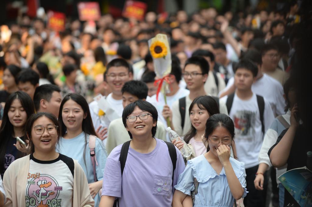 考生們從考場魚貫而出,家長們送上鮮花和擁抱,大家合影留念,記錄下青春歲月里的難忘時(shí)刻……