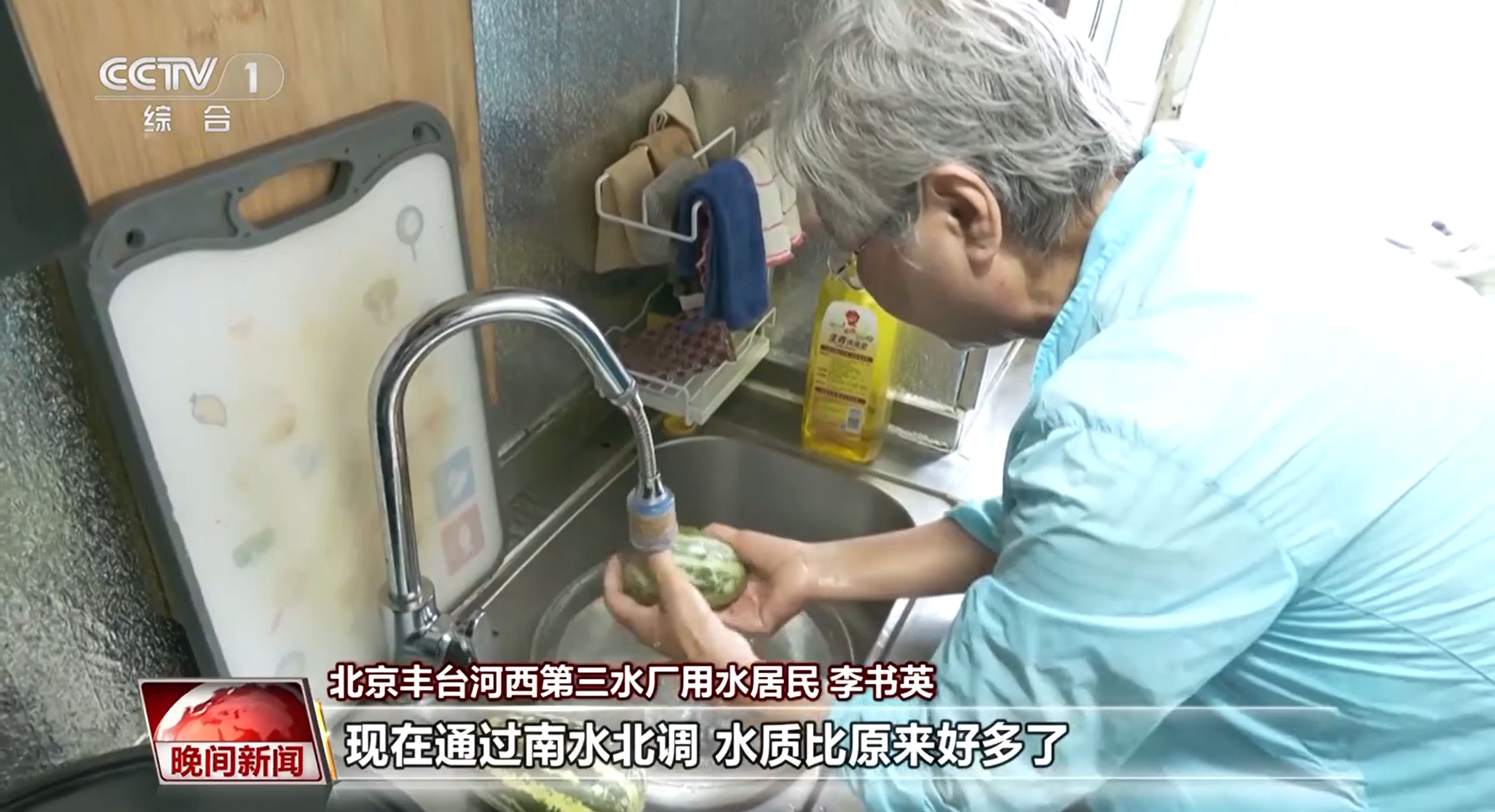 北京豐臺(tái)河西第三水廠用水居民 李書英:我們?cè)瓉恚┧臅r(shí)候,用那水壺(燒)開了(水)以后還得沉淀,沉淀十幾分鐘以后再灌暖壺,但是暖壺里水堿也特別多,現(xiàn)在通過南水北調(diào),水質(zhì)比原來好多了,水堿比原來大大減少。
