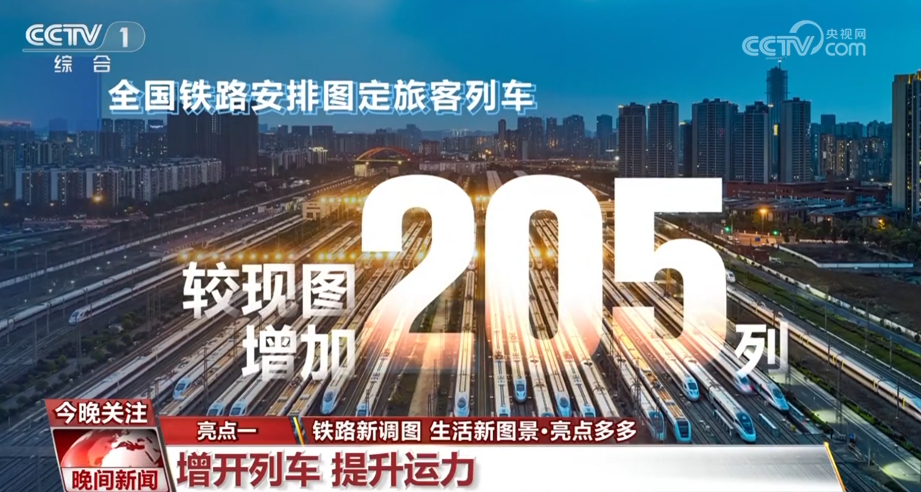 調(diào)圖后,全國(guó)鐵路安排圖定旅客列車12690列,較現(xiàn)圖增加205列;開行貨物列車22595列,較現(xiàn)圖增加74列,鐵路客貨運(yùn)輸效率進(jìn)一步提升。