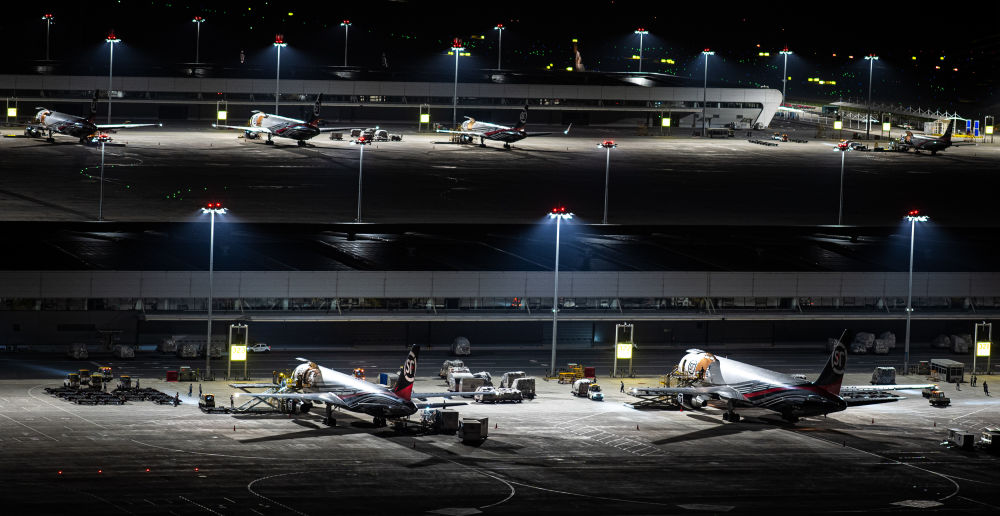 6月2日凌晨拍攝的鄂州花湖國際機場停機坪一角。新華社記者 肖藝九 攝