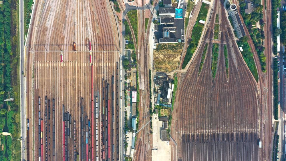 這是2023年9月拍攝的鄭州北站編組場(無人機照片)。新華社記者 殷剛 攝