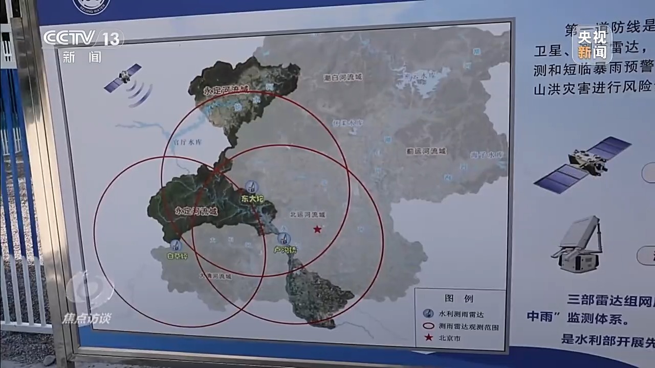 近年來,水利部門一直在抓緊推動雨水情監(jiān)測預(yù)報“三道防線”的建設(shè),第一道防線的基本構(gòu)成是氣象衛(wèi)星和測雨雷達(dá),第二道防線的基本構(gòu)成是雨量站,第三道防線的基本構(gòu)成是水文站。這“三道防線”通過“天空地”的立體監(jiān)測手段,對流域內(nèi)雨水情進(jìn)行實時監(jiān)測和預(yù)報預(yù)警,以便及時采取措施應(yīng)對可能出現(xiàn)的洪澇災(zāi)害。三座聯(lián)網(wǎng)的測雨雷達(dá)就是北京市官廳山峽區(qū)域,也就是永定河流域洪水預(yù)測預(yù)報“第一道防線”的重要組成部分。