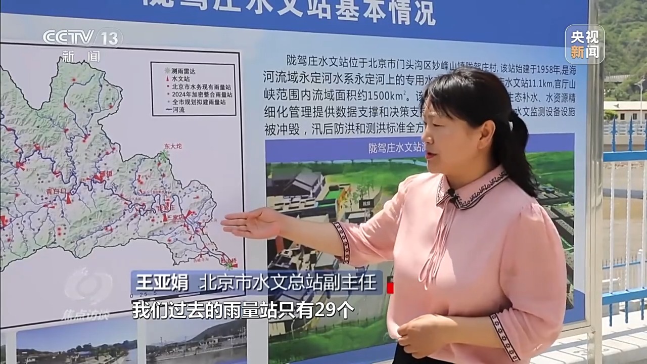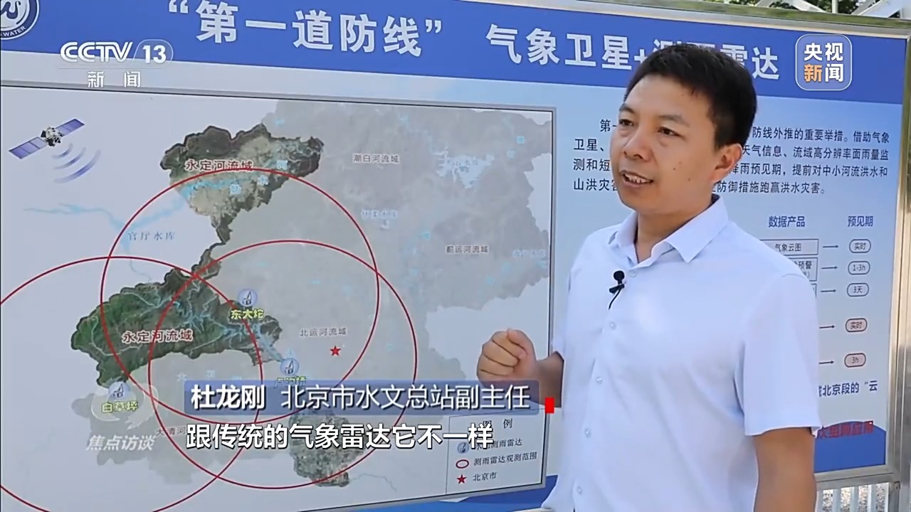 北京市水文總站副主任 杜龍剛:過去傳統(tǒng)北京水務(wù)用的是245個雨量站,今年,我們通過加密并整合氣象部門和北京市規(guī)劃和自然資源委員會的雨量站點(diǎn),達(dá)到了1900多個。