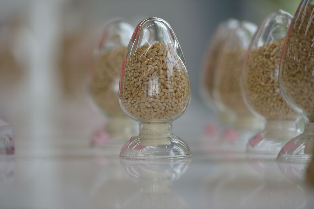 這是5月31日在位于河南新鄉(xiāng)的中原農(nóng)谷國家生物育種產(chǎn)業(yè)創(chuàng)新中心神農(nóng)種業(yè)實驗室拍攝的種子樣本。新華社記者 劉力航 攝