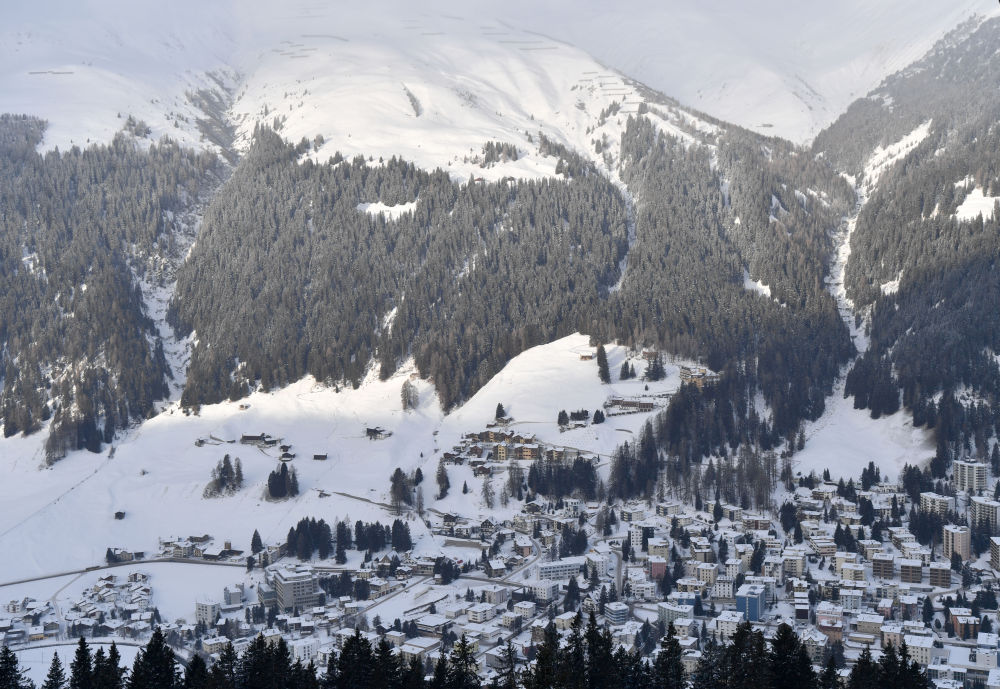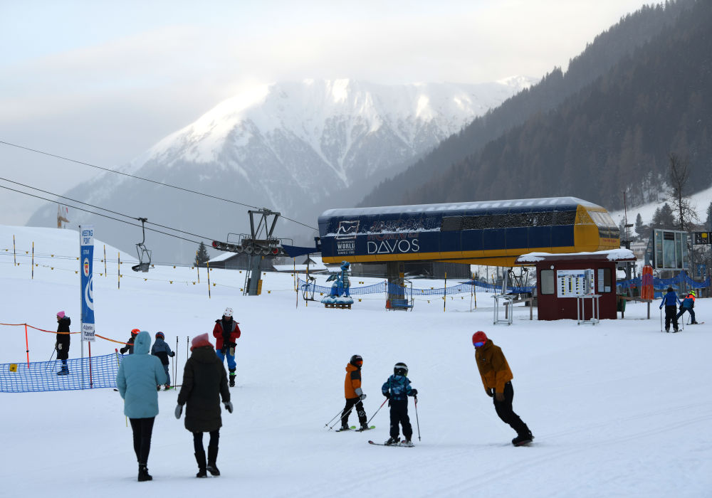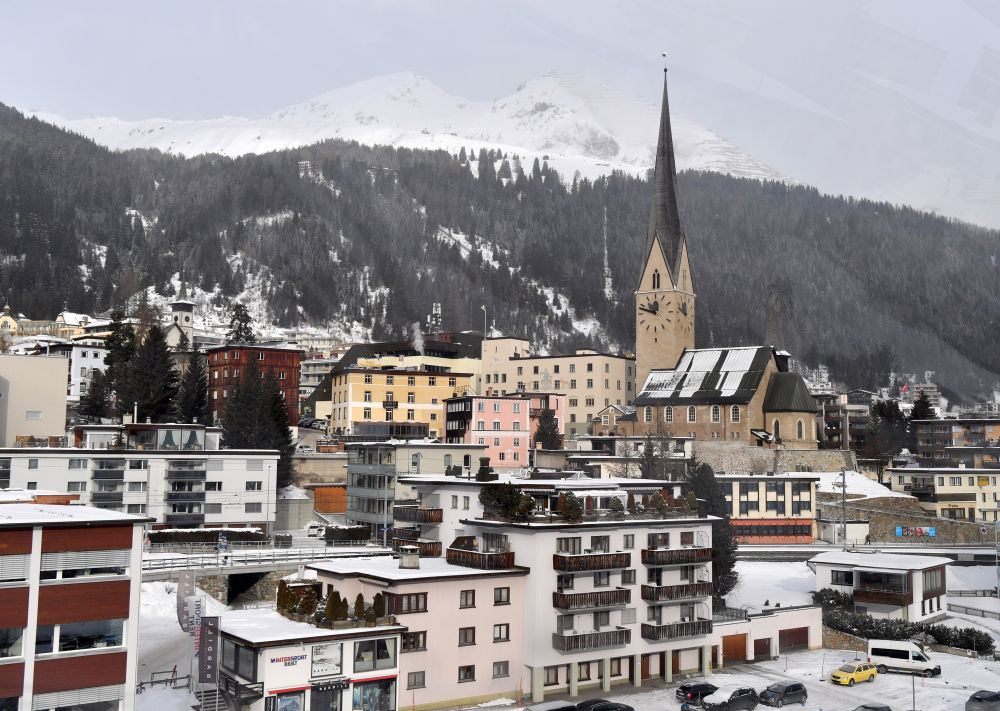 ↑在瑞士達(dá)沃斯拍攝的世界經(jīng)濟(jì)論壇標(biāo)識。