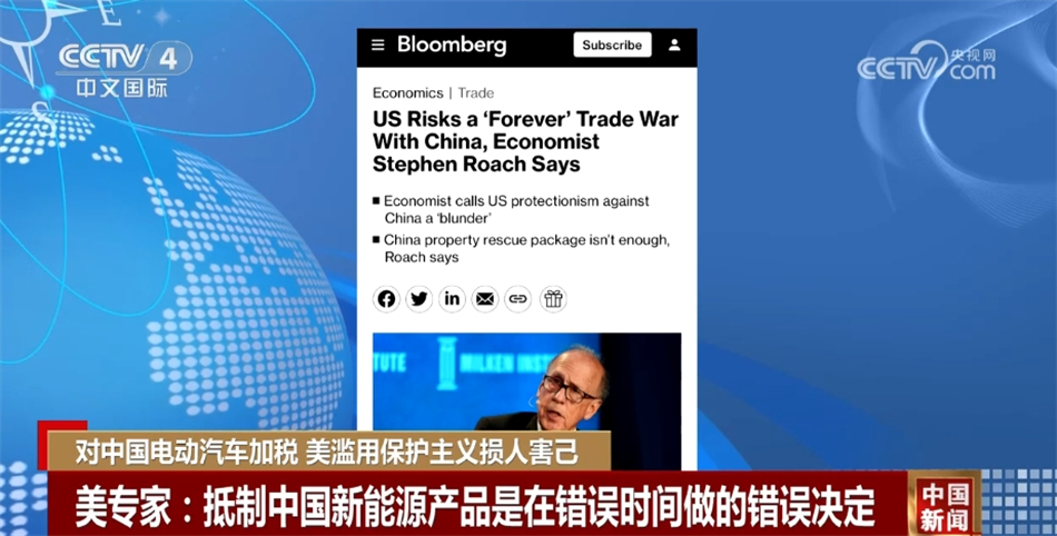 美國耶魯大學(xué)高級(jí)研究員斯蒂芬·羅奇稱:“我認(rèn)為這是美國選舉年由政治驅(qū)動(dòng)的巨大戰(zhàn)略錯(cuò)誤,對(duì)中國這樣一個(gè)在生產(chǎn)零碳新能源產(chǎn)品方面具有比較優(yōu)勢(shì)的國家,采取貿(mào)易保護(hù)主義立場,在我看來,這可能是一個(gè)歷史性的錯(cuò)誤。零碳替代能源產(chǎn)品是受到氣候變化影響的世界所迫切需要的,這恰恰是在錯(cuò)誤的時(shí)間做了錯(cuò)誤的事。”