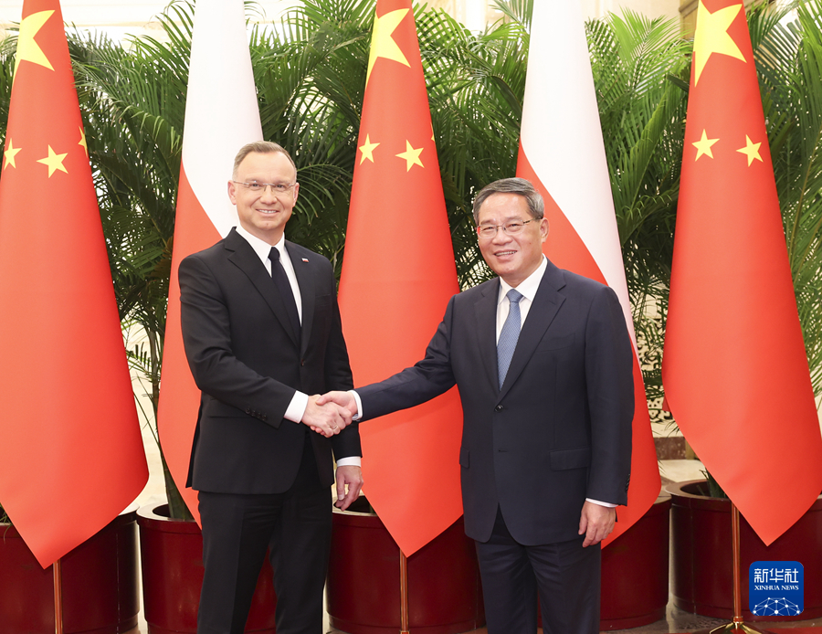 6月24日上午,國務(wù)院總理李強(qiáng)在北京人民大會堂會見來華進(jìn)行國事訪問的波蘭總統(tǒng)杜達(dá)。新華社記者 龐興雷 攝