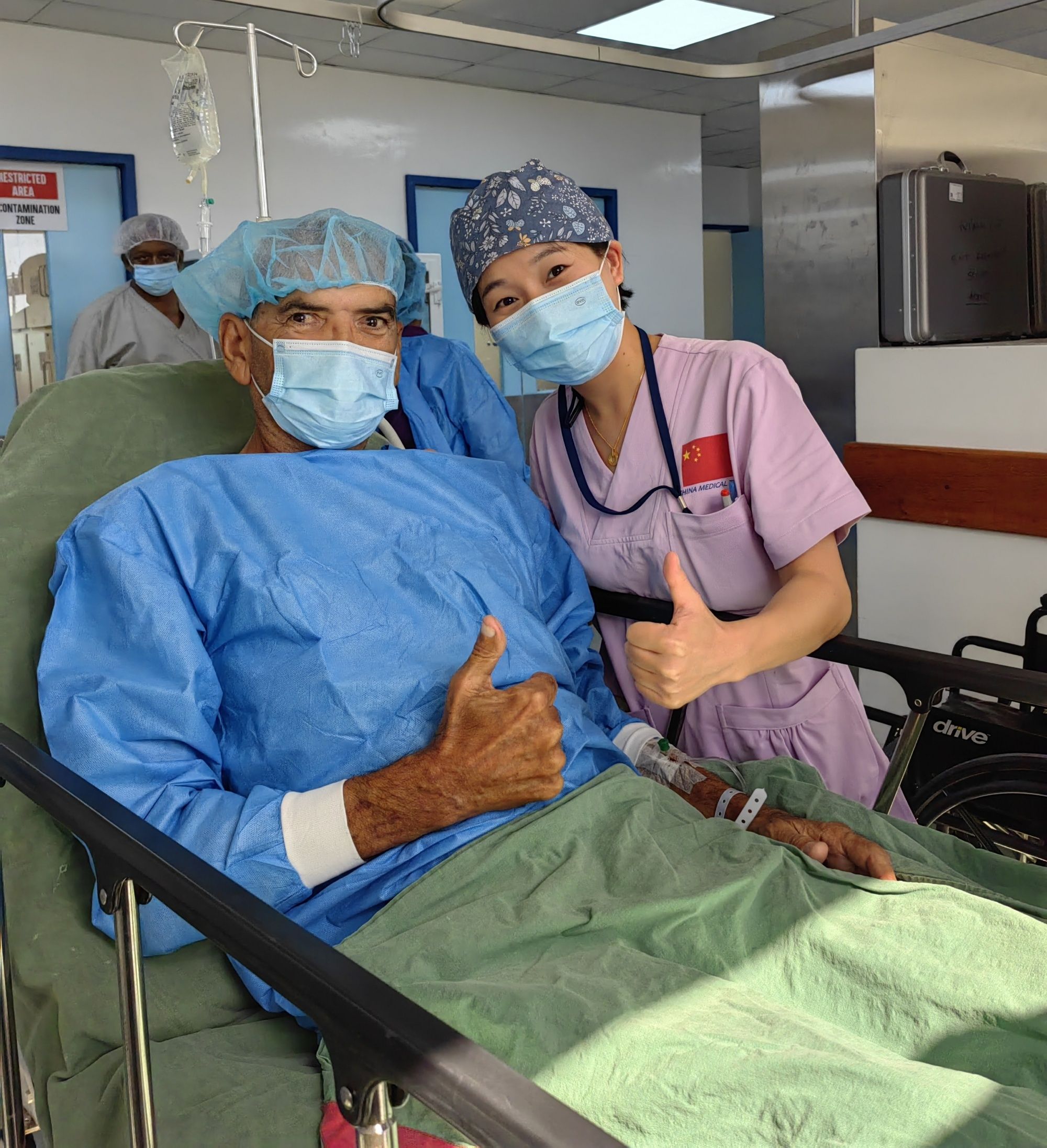 袁小舒:當(dāng)?shù)蒯t(yī)院由于資源有限,所以在腔鏡器械的組裝和手術(shù)配合上,當(dāng)?shù)刈o(hù)士不是特別熟悉。護(hù)士長聽說我有這方面經(jīng)驗,希望我能給他們提供幫助。憑借在國內(nèi)的扎實基礎(chǔ),我很快地熟悉了手術(shù)器械,重新組裝后順利使用。臺上的手術(shù)醫(yī)生在術(shù)后特別找到我表示感謝,說他們一定會記住這名中國護(hù)士,希望以后的手術(shù)我都能在。