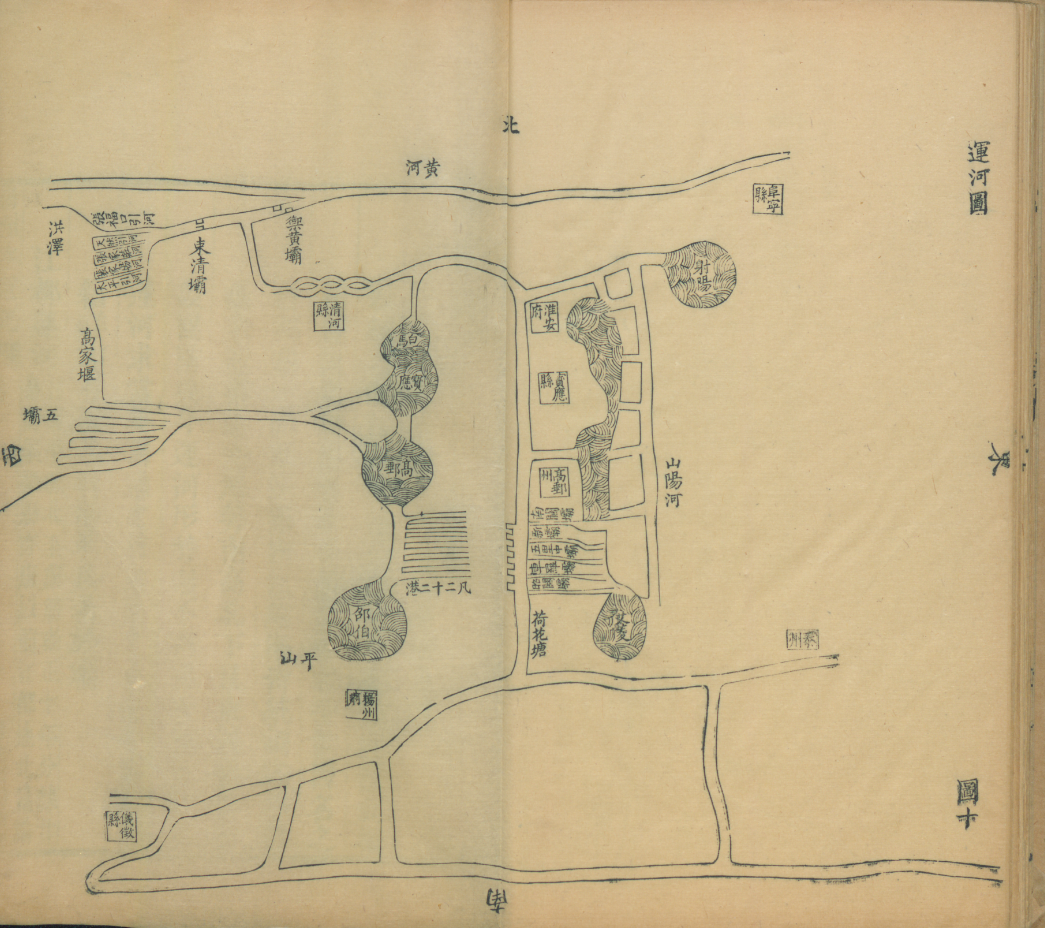 《邗溝故道歷代變遷圖說》(清)徐庭曾撰清光緒三十年(1904)刻本一書,曾以地圖的形式展示了邗溝故道以及歷史上的七次變遷。八幅運河圖,圖版詳實,文字簡明,還標(biāo)注出了水道的變化。