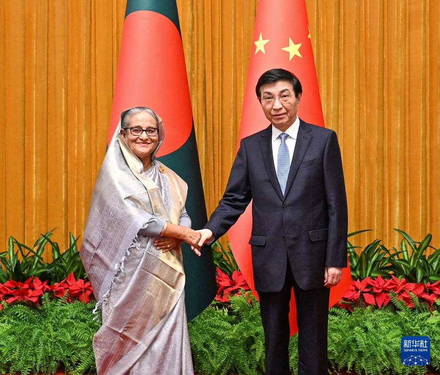 全國(guó)政協(xié)主席王滬寧9日在京會(huì)見孟加拉國(guó)總理哈西娜。