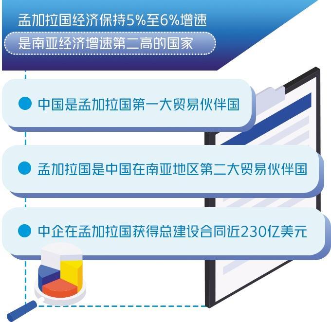 近年來,孟加拉國經濟穩(wěn)步增長,保持5%至6%的經濟增速,是南亞經濟增速第二高的國家。孟加拉國推行私有化政策,改善投資環(huán)境,大力吸引外商投資,積極創(chuàng)建出口加工區(qū)。中國是孟加拉國第一大貿易伙伴國,孟加拉國是中國在南亞地區(qū)第二大貿易伙伴國。兩國在紡織服裝、路橋建設、能源、農業(yè)等領域合作基礎深厚,在基建設施、食品加工、產業(yè)園等領域合作潛力巨大,雙邊經貿關系展現(xiàn)出強勁的發(fā)展勢頭。
