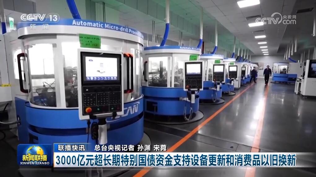 3000億元超長(zhǎng)期特別國(guó)債資金支持設(shè)備更新和消費(fèi)品以舊換新