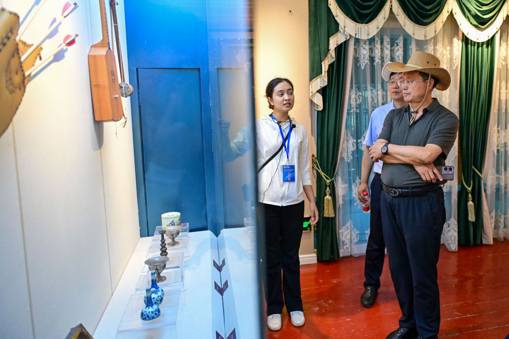 游客在新疆塔城市首家民俗文化家庭博物館參觀(7月24日攝)。