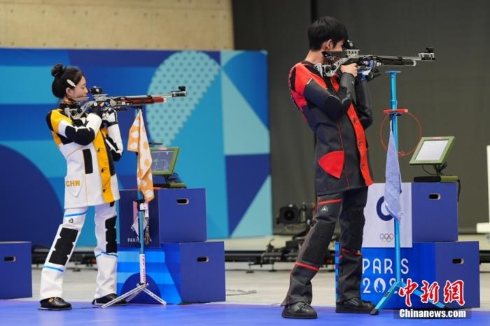 當(dāng)天,在巴黎奧運會射擊10米氣步槍混合團體決賽中,“00”后中國組合黃雨婷/盛李豪摘得金牌,這也是巴黎奧運會誕生的首枚金牌。