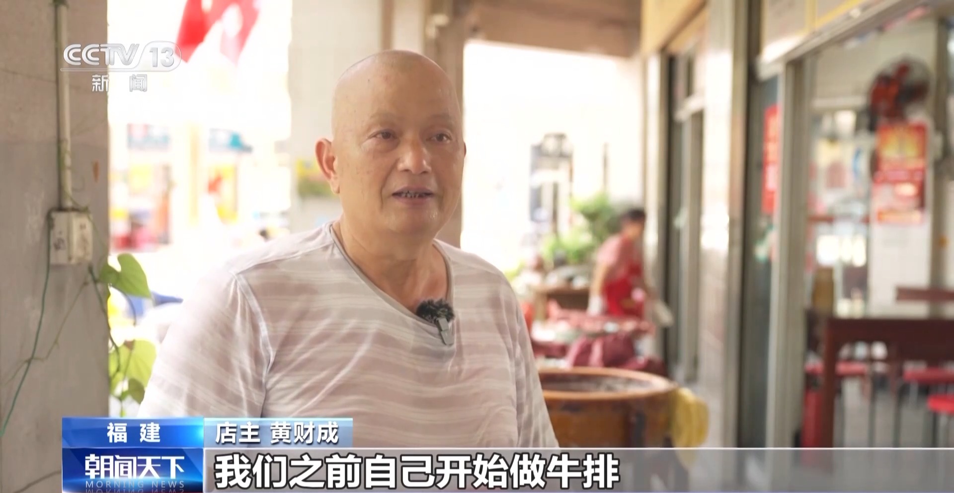 店主 黃財成:一百多年前國外的人來泉州經(jīng)商,基本上都是吃牛肉的。我們之前自己開始做牛排、牛肉羹、牛雜。當(dāng)年我爺爺去南洋幫廚,再來到我們這邊改良,特別是華僑大學(xué)的留學(xué)生,周六周日都來我們這家店吃。