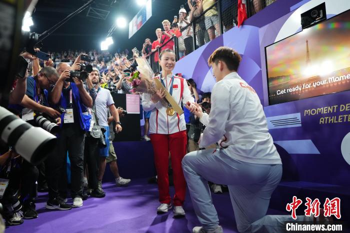 2016年里約奧運(yùn)會,跳水女子三米板的頒獎(jiǎng)典禮后,跳水運(yùn)動員秦凱向何姿求婚的場景曾感動全球無數(shù)觀眾。巴黎奧運(yùn)會上,浪漫一刻再度上演。