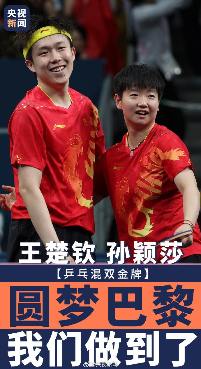 7月30日,在巴黎奧運(yùn)會乒乓球混合雙打決賽中,中國組合王楚欽/孫穎莎4-2戰(zhàn)勝朝鮮組合,奪得金牌?!拔覀冏龅搅?!”東京的遺憾在巴黎畫上了一個圓滿的句號!