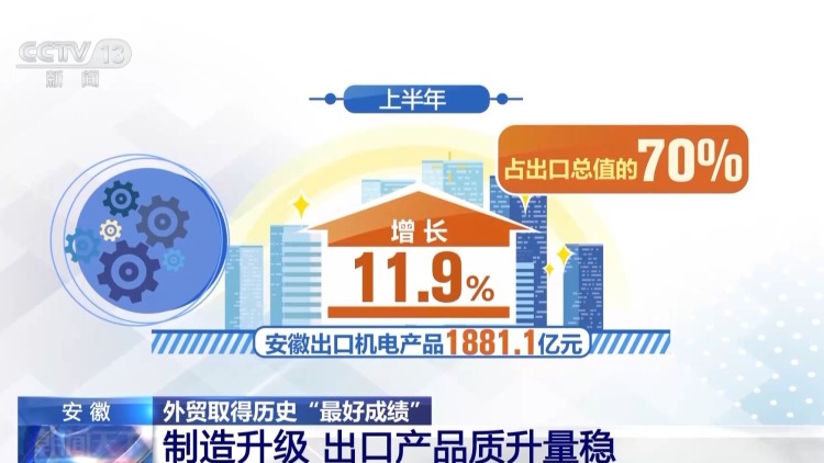 今年上半年,安徽的貨物貿(mào)易進(jìn)出口總值3967.8億元,同比增長(zhǎng)7.4%,創(chuàng)下歷史同期最好水平。安徽外貿(mào)取得歷史“最好成績(jī)”,背后的動(dòng)力是什么?