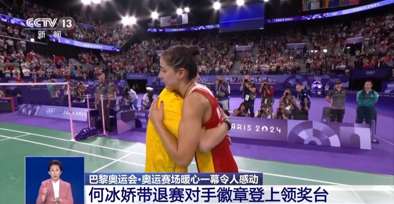 在羽毛球女單決賽中,中國選手何冰嬌0∶2不敵韓國的安洗瑩,收獲一枚銀牌。頒獎(jiǎng)儀式上,何冰嬌在舉起獎(jiǎng)牌的同時(shí),拿出了一枚帶有西班牙國旗的徽章,向半決賽中因傷退賽的西班牙名將馬林送上慰問,祝愿她能夠早日康復(fù),重回賽場。運(yùn)動(dòng)員之間不只有競爭,也有惺惺相惜、互相尊重,這也是奧林匹克精神的一種體現(xiàn)。