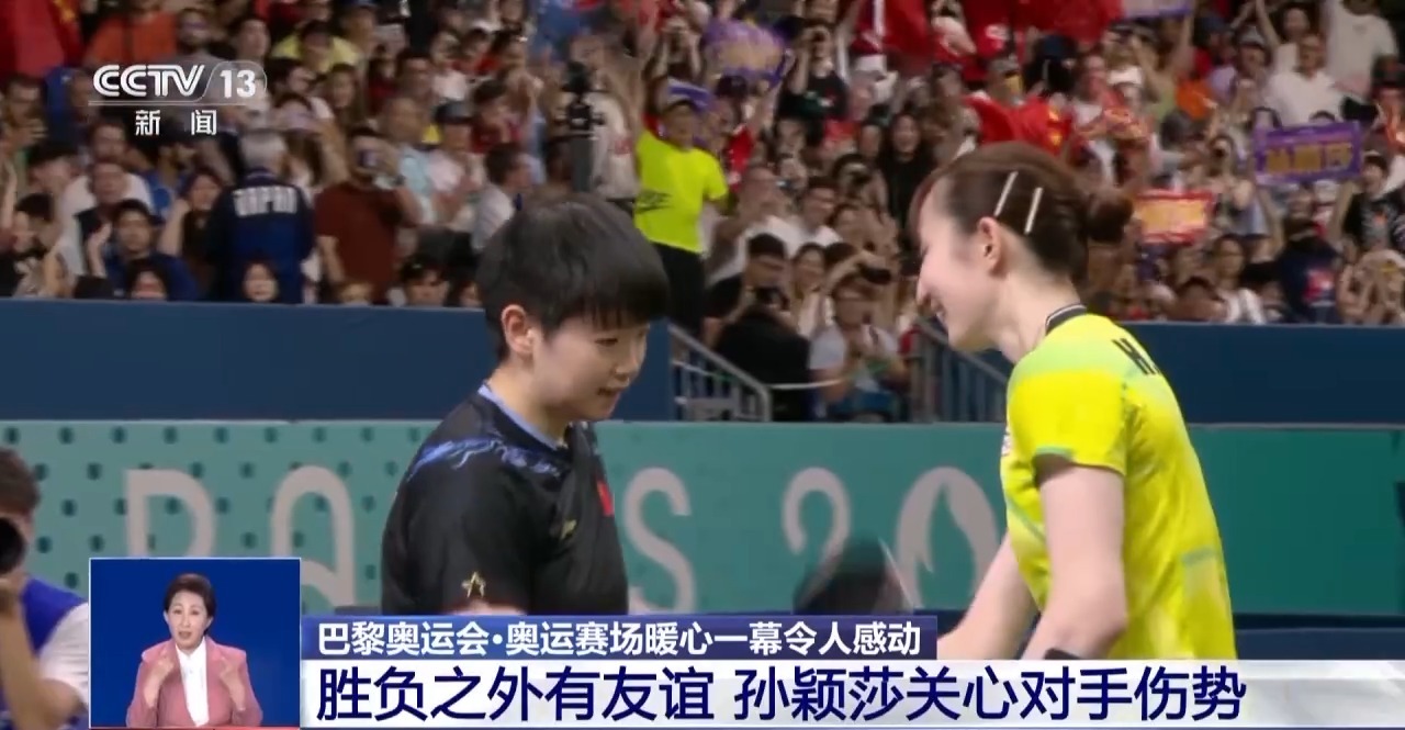 乒乓球女單半決賽,孫穎莎與日本選手早田希娜狹路相逢,技高一籌的莎莎以4∶0橫掃對手晉級。比賽結(jié)束之后,孫穎莎沒有慶祝就匆匆忙忙走到早田身邊,關(guān)切地詢問她手腕的傷勢。一個(gè)小小的暖心之舉,讓日本女孩大受感動(dòng)。孫穎莎也用自己的行動(dòng)詮釋了“友誼第一,比賽第二”的體育精神。