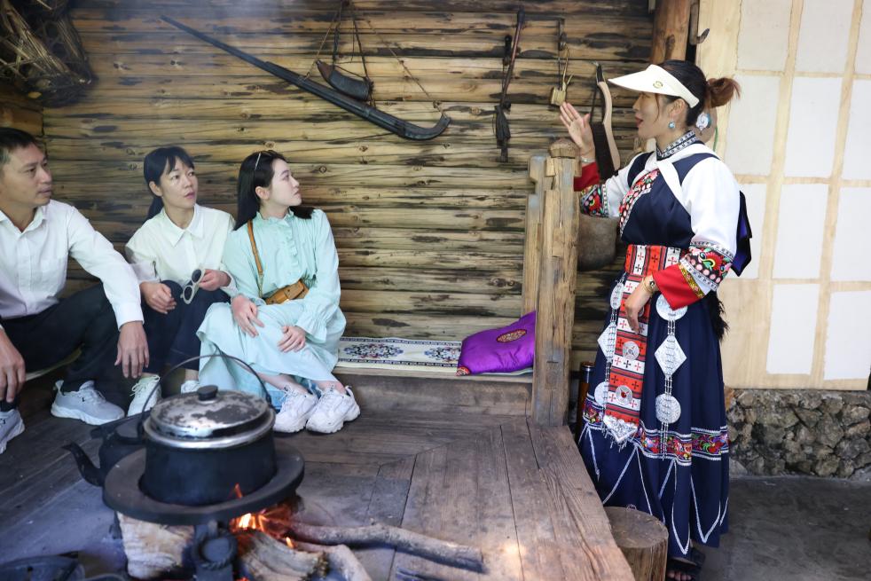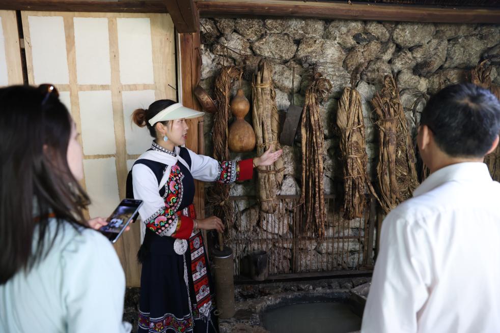 7月31日,游客在麗江市玉龍納西族自治縣玉湖村的一處納西族村民家中體驗(yàn)當(dāng)?shù)靥厣幕P氯A社記者 呂帥 攝