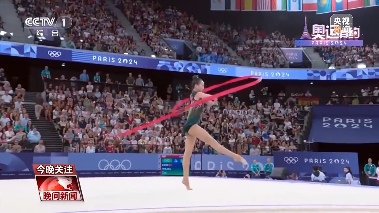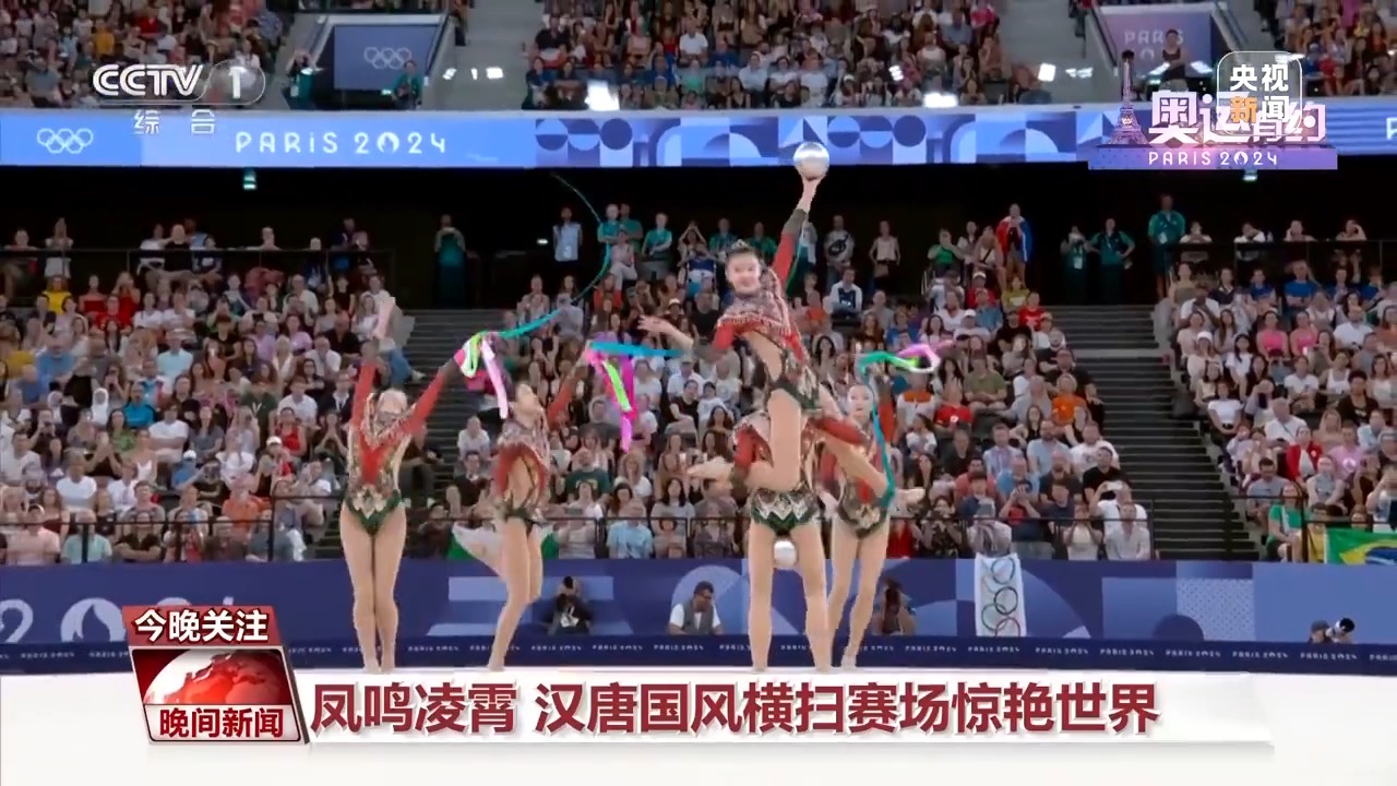 而在藝術(shù)體操女子團(tuán)體全能決賽中,中國藝術(shù)體操的姑娘們以總分69.8分,拿下該項(xiàng)目的金牌。在決賽三帶兩球項(xiàng)目《鳳鳴凌霄》表演中,伴隨著動(dòng)聽的音樂,姑娘們靈活地運(yùn)用彩帶和球,以精準(zhǔn)的動(dòng)作、極具張力的表演,詮釋了漢唐國風(fēng)的民族美學(xué)。