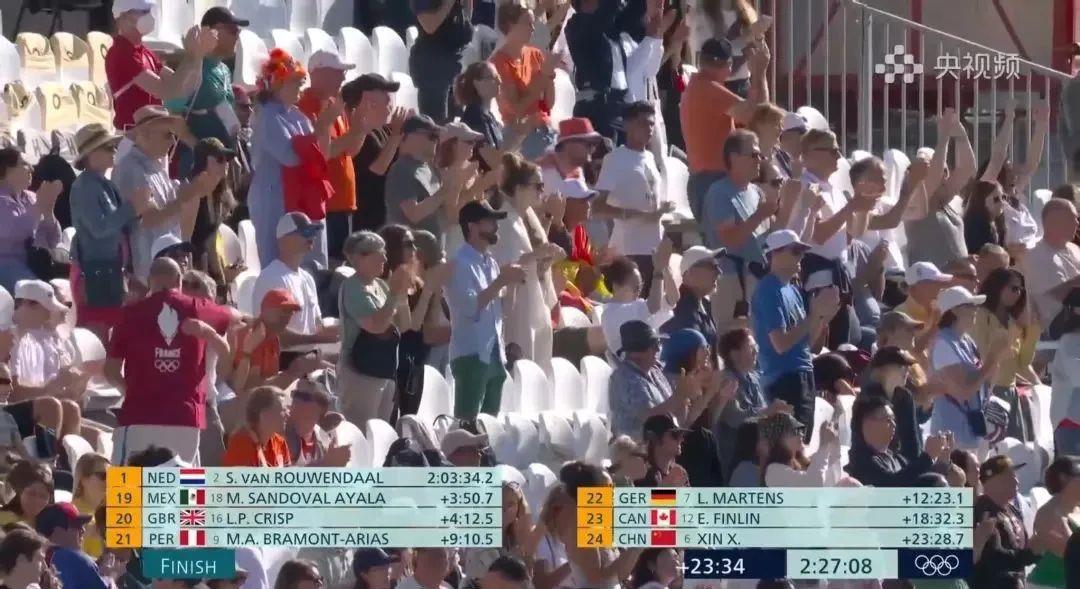 當她的身姿出現(xiàn)在比賽終點,現(xiàn)場觀眾紛紛起立喝彩鼓掌,向這位意志堅定、堅持到底、拼搏向前的中國姑娘致敬。