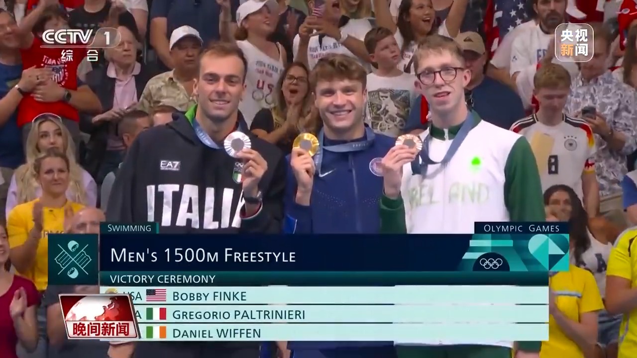 游泳項目,速度比拼。男子1500米自由泳決賽,身處第7道的美國選手芬克,從一入水就處于領(lǐng)先的位置,最終以14分30秒67觸壁,獲得冠軍的同時,也打破了世界紀錄。
