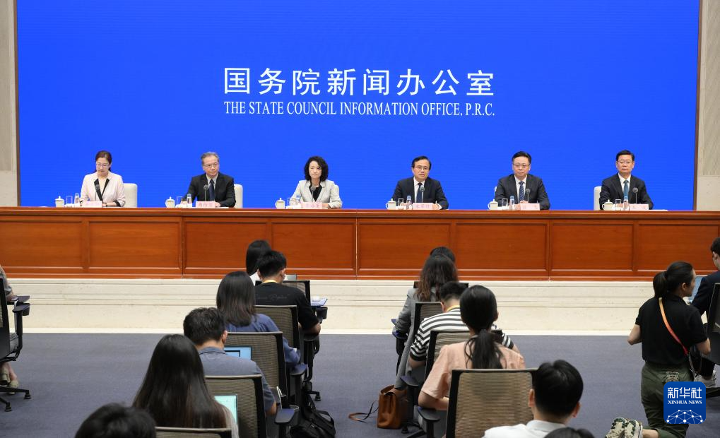 8月16日,國務(wù)院新聞辦公室在北京舉行新聞發(fā)布會(huì),商務(wù)部國際貿(mào)易談判副代表李詠箑、山東省副省長宋軍繼、商務(wù)部國際貿(mào)易經(jīng)濟(jì)合作研究院副院長曲維璽、山東省商務(wù)廳廳長陳飛、青島市副市長王波介紹2024年跨國公司領(lǐng)導(dǎo)人青島峰會(huì)有關(guān)情況,并答記者問。新華社記者 李賀 攝