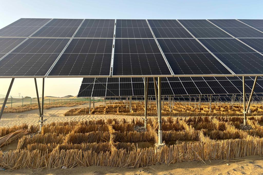 沙戈荒光伏生態(tài)治沙示范項(xiàng)目區(qū)。(王騫 攝)