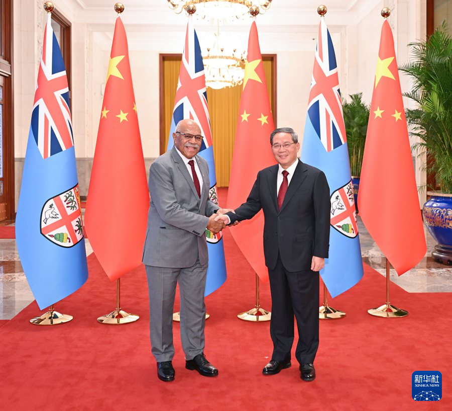 李強(qiáng)指出,中方愿同斐方一道努力,推動兩國務(wù)實合作提升到新的水平。雙方要進(jìn)一步發(fā)揮互補(bǔ)優(yōu)勢,在高質(zhì)量共建“一帶一路”框架下深化基礎(chǔ)設(shè)施、農(nóng)漁業(yè)、輕工業(yè)、教育、旅游、減貧等領(lǐng)域合作,更好促進(jìn)共同發(fā)展。中方愿進(jìn)口斐方更多優(yōu)質(zhì)產(chǎn)品,支持中資企業(yè)到斐濟(jì)投資興業(yè)。中斐同為“全球南方”成員,中方贊賞斐方提出的“和平之海”愿景,支持太平洋島國落實《藍(lán)色太平洋2050戰(zhàn)略》,愿加強(qiáng)同斐濟(jì)等島國的溝通協(xié)作,積極落實全球發(fā)展倡議、全球安全倡議、全球文明倡議,共同倡導(dǎo)平等有序的世界多極化和普惠包容的經(jīng)濟(jì)全球化。