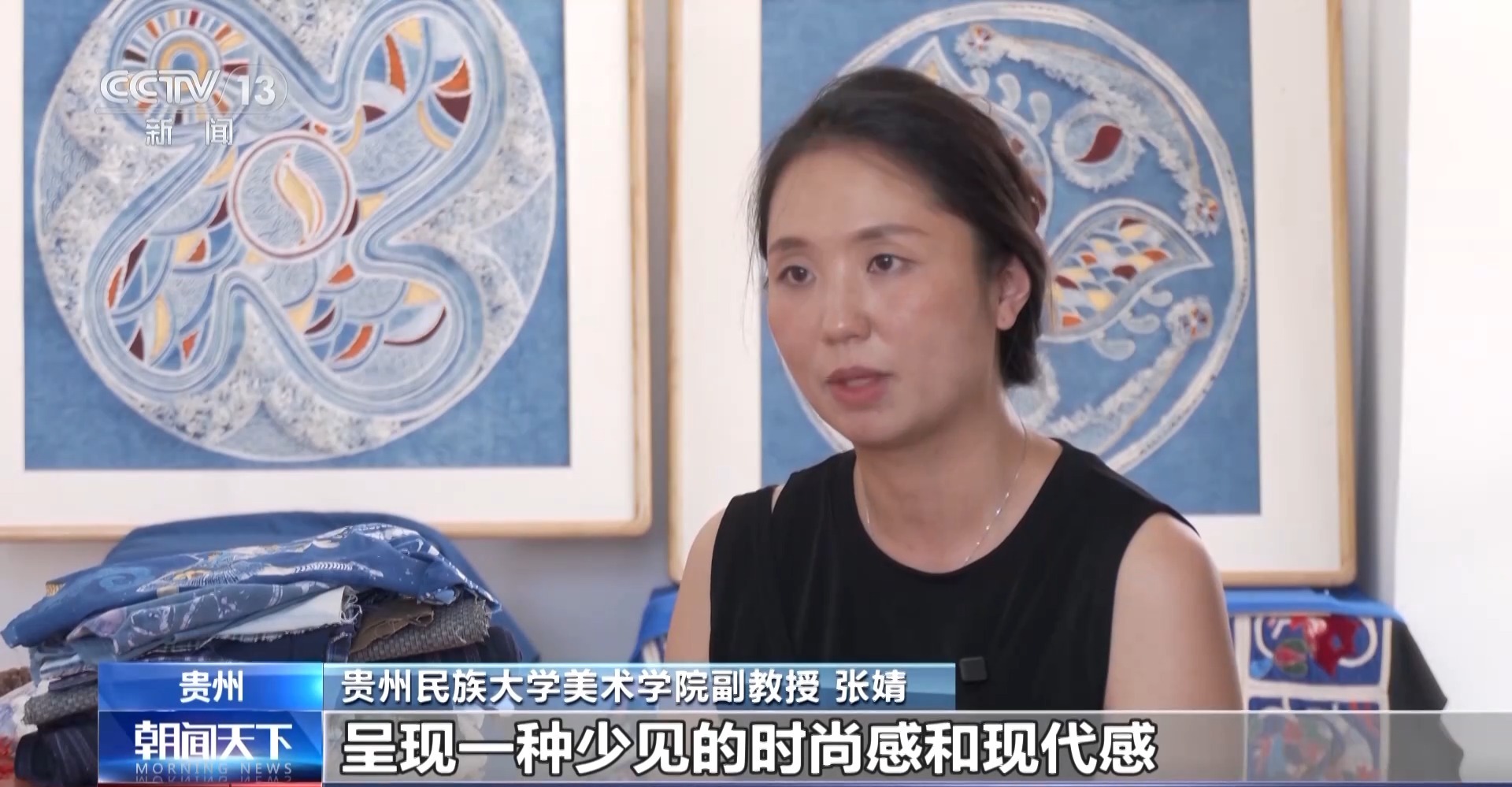 貴州民族大學(xué)美術(shù)學(xué)院副教授 張婧:在它的色調(diào)和質(zhì)感的對(duì)撞和對(duì)比下,使得劍河錫繡呈現(xiàn)一種少見(jiàn)的時(shí)尚感和現(xiàn)代感。