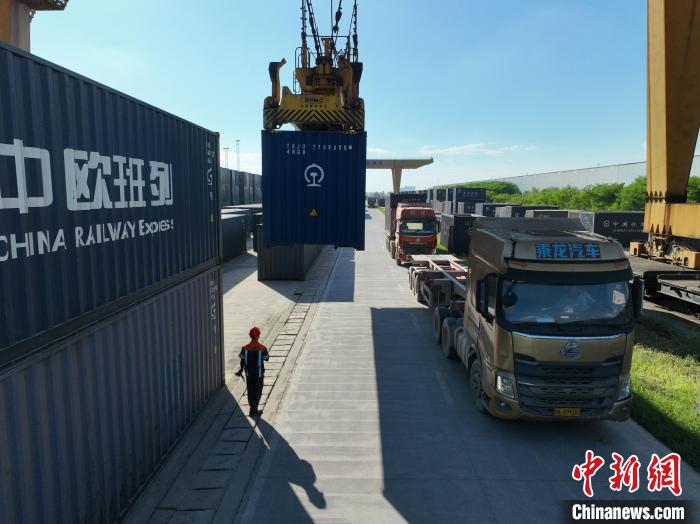 8月26日,廣西南寧國際鐵路港內(nèi),鐵路職工頂著下午的烈日,正在為發(fā)往越南的貨運(yùn)班列裝卸貨物。該鐵路港是廣西始發(fā)中越班列的核心場站。國鐵南寧局提供的信息顯示,今年前7個月,廣西始發(fā)中越班列累計發(fā)運(yùn)貨物6850標(biāo)箱,同比增長16倍;其中7月份發(fā)運(yùn)1922標(biāo)箱,超過今年一季度發(fā)運(yùn)量總和,為今年以來第三次刷新單月發(fā)運(yùn)量紀(jì)錄。圖為集裝箱擺滿場站,等待裝車。王以照 攝