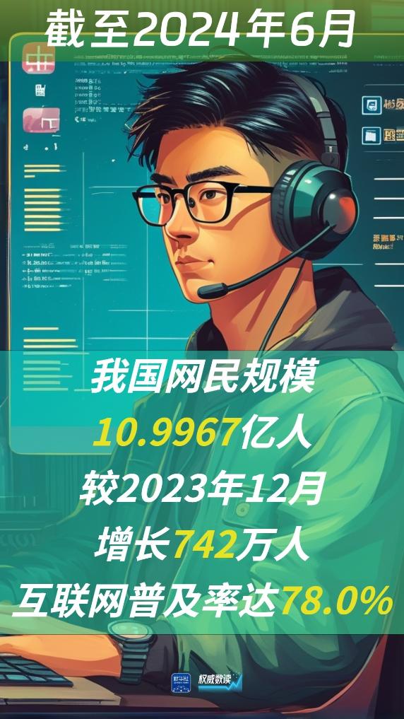 8月29日,中國互聯(lián)網(wǎng)絡(luò)信息中心(CNNIC)發(fā)布第54次《中國互聯(lián)網(wǎng)絡(luò)發(fā)展?fàn)顩r統(tǒng)計報告》。報告顯示,截至2024年6月,我國網(wǎng)民規(guī)模近11億人(10.9967億人),較2023年12月增長742萬人,互聯(lián)網(wǎng)普及率達(dá)78.0%。