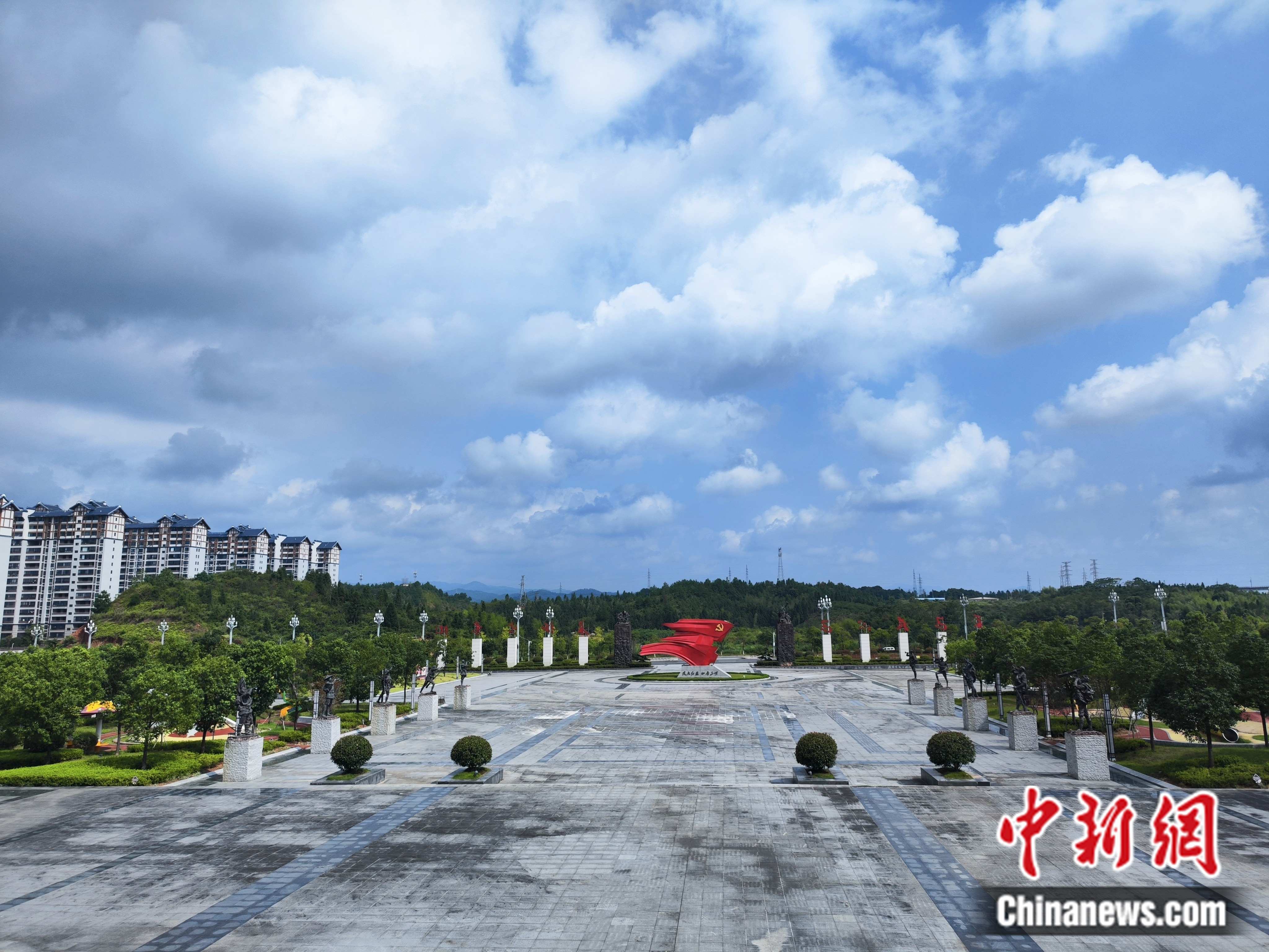 寧化縣長征精神教育基地外,一則“紅旗”主題雕塑引人注目。劉越 攝