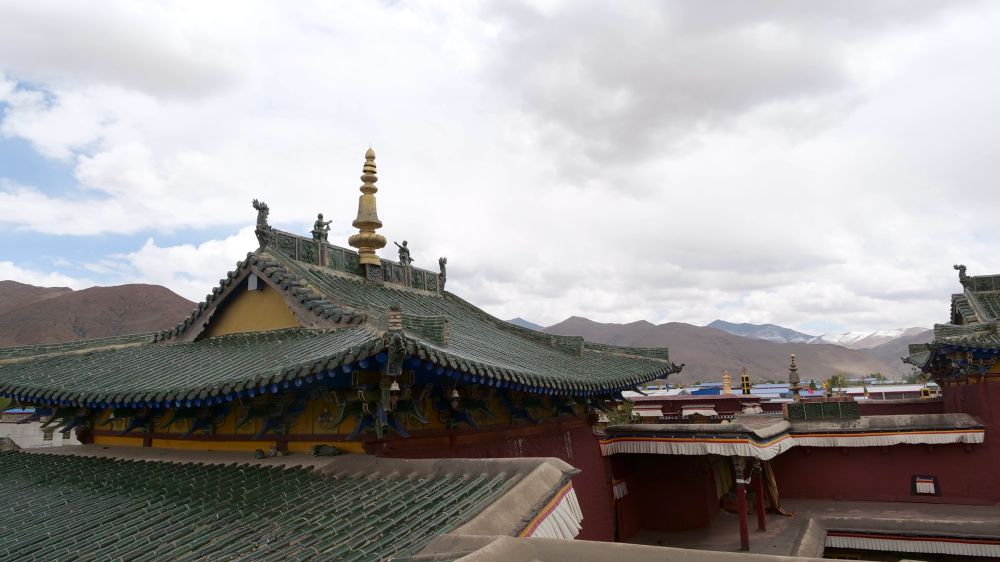這是夏魯寺重檐歇山式屋頂,呈現(xiàn)典型的漢藏融合風格(2024年5月8日攝)。新華社記者 邱星翔 攝