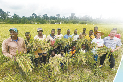 位于科特迪瓦迪沃省的格格杜墾區(qū)于1997年迎來(lái)第一批中國(guó)農(nóng)業(yè)技術(shù)合作組專家,經(jīng)過(guò)近30年的努力,墾區(qū)已成為中科兩國(guó)農(nóng)業(yè)合作示范基地和科特迪瓦全國(guó)聞名的水稻種植基地。圖為中國(guó)農(nóng)業(yè)專家與當(dāng)?shù)剞r(nóng)民在水稻田中慶祝豐收。