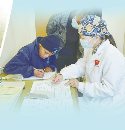自1997年以來(lái),中國(guó)湖北省承擔(dān)向萊索托王國(guó)派遣醫(yī)療隊(duì)的任務(wù),醫(yī)療隊(duì)隊(duì)員在當(dāng)?shù)卦\治了大量常見(jiàn)病、多發(fā)病,治愈了眾多疑難病癥,深受萊索托民眾歡迎與尊敬。圖為第十八批中國(guó)援萊索托醫(yī)療隊(duì)醫(yī)生王琦正在接診患者。
