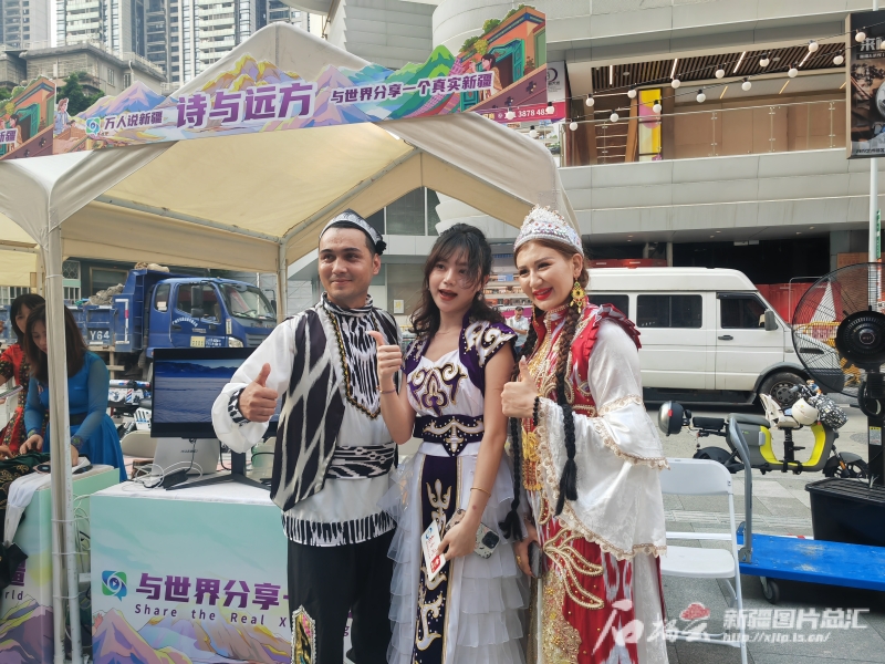 來自大連的王先生到廣州出差,途經(jīng)“萬人說新疆”活動現(xiàn)場,他停下了腳步?!斑@是第一次近距離了解新疆的非遺展品,第一次吃到正宗的新疆美食,我好喜歡,希望‘萬人說新疆’活動可以走進(jìn)我的家鄉(xiāng)大連。”王先生說,一直覺得新疆很遙遠(yuǎn),這一次短暫的接觸新疆人文和美景后,感覺詩與遠(yuǎn)方魅力無限,再遠(yuǎn)也值得去一趟。
