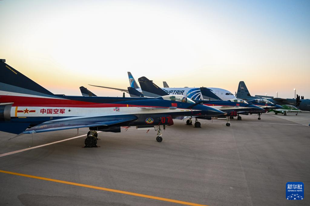 9月3日,在埃及阿拉曼開幕的首屆埃及航展上,中國空軍八一飛行表演隊(duì)殲-10表演機(jī)進(jìn)行靜態(tài)展示。新華社發(fā)(周雪峰 攝)