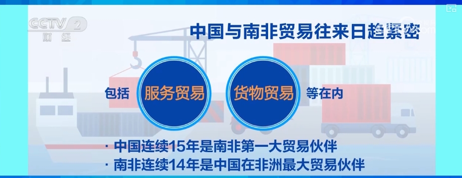 據(jù)統(tǒng)計,包括服務(wù)貿(mào)易、貨物貿(mào)易等在內(nèi),中國連續(xù)15年是南非第一大貿(mào)易伙伴,而南非則連續(xù)14年是中國在非洲最大貿(mào)易伙伴。2024年前5個月,雙邊貿(mào)易額達(dá)235億美元。其中,南非對華出口153億美元,同比增長近14%。