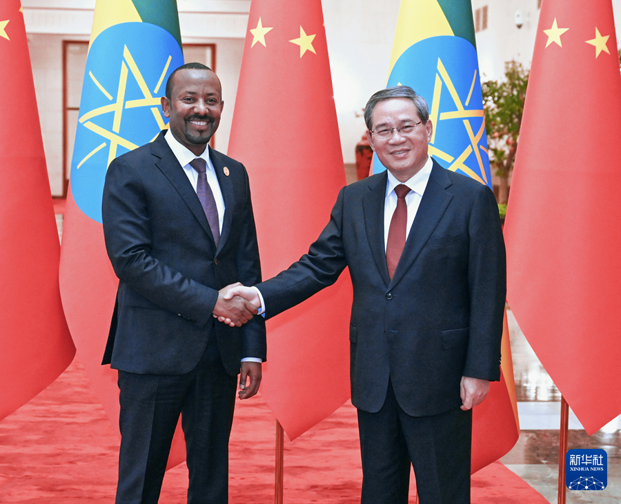 李強指出,中方愿同埃塞繼續(xù)相互幫助、相互支持,在共同發(fā)展的道路上并肩前行。雙方要深入對接發(fā)展戰(zhàn)略,擴大貿(mào)易投資規(guī)模,加強互聯(lián)互通建設(shè),積極開拓新能源、數(shù)字經(jīng)濟、人工智能等新興產(chǎn)業(yè)合作。中方愿進口埃塞更多優(yōu)質(zhì)產(chǎn)品,鼓勵更多中國企業(yè)赴埃塞投資。中方愿同埃塞一道推動此次中非合作論壇北京峰會成果落實落地,發(fā)揮亞吉鐵路帶動作用,用好中非合作平臺,構(gòu)建中非合作大發(fā)展新格局。中方支持埃塞全面融入金磚合作,愿同埃塞攜手推動全球南方合作進程,維護國際公平正義,共促世界的和平穩(wěn)定、發(fā)展繁榮。