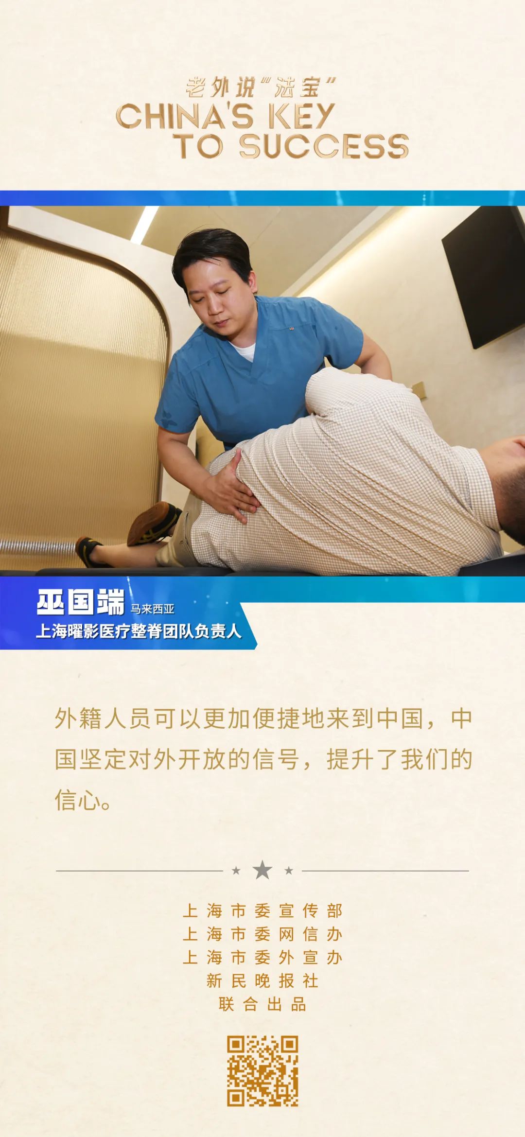馬來西亞人巫國端是上海曜影醫(yī)療整脊團隊負責(zé)人。2014年,他只身來到上海從事醫(yī)療工作,今年是他在這座城市的第十個年頭。